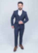 Checked Navy Blue 3 Piece Suit | Checked Suit with Vest